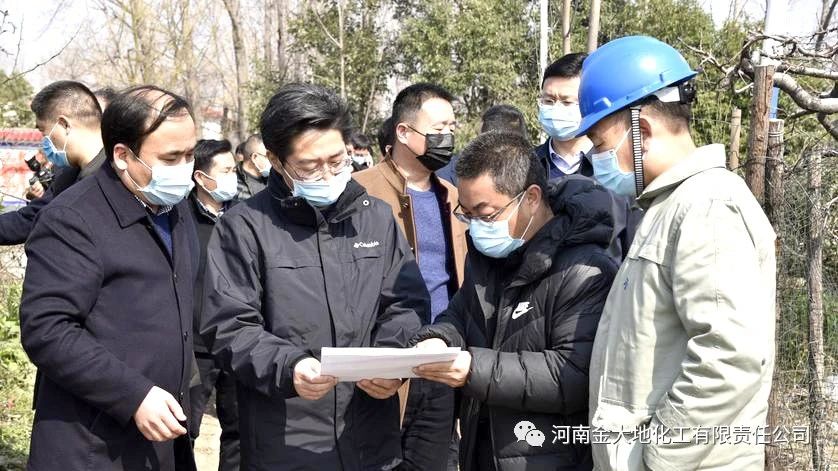 2020年3月4日上午,舞陽(yáng)縣委書(shū)記李亦博帶領(lǐng)縣發(fā)改、工信、稅務(wù)、應急管理、生態(tài)環(huán)境、自然資源等有關(guān)部門(mén)領(lǐng)導,到金大地公司60萬(wàn)噸小蘇打項目、金山物流園項目、環(huán)企林帶項目區進(jìn)行實(shí)地調研,舞陽(yáng)縣領(lǐng)導閆沛、許紹偉、周俊偉、趙華鋒等一同調研。集團總經(jīng)理湯順利做情況介紹。