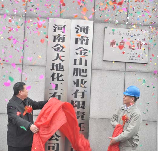 舞泉鎮黨委書(shū)記蔡運安、鎮長(cháng)何凱東,集團總經(jīng)理湯順利、副總經(jīng)理王超、監事會(huì )主席王成才,金驥公司總經(jīng)理張紅強、金大地公司負責人丁坤堂、金山肥業(yè)公司總經(jīng)理柴大光及百余名干部職工參加了此次揭牌儀式。