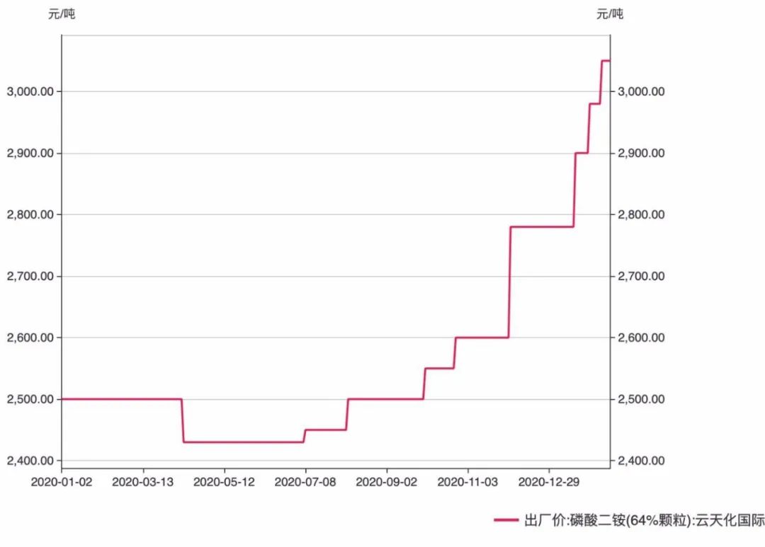 磷肥方面,磷酸二銨價(jià)格自年初以來(lái)持續大幅上調,目前報價(jià)已升至近2年新高。