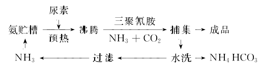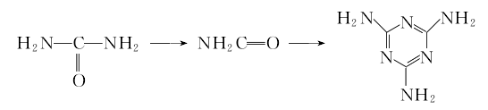 1. 以氨氣為載體,以硅膠為催化劑,尿素在380~400攝氏度下分解成氰酸,經(jīng)過(guò)進(jìn)一步縮聚后得到三聚氰胺氣體
