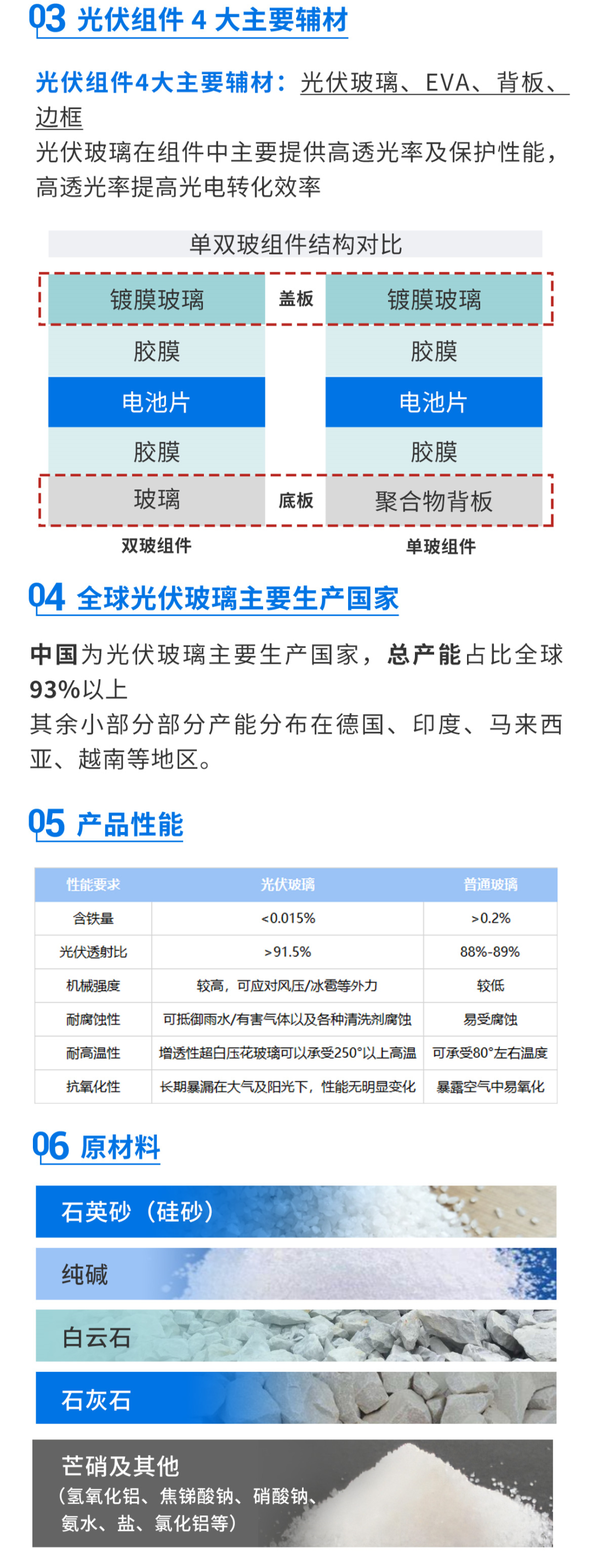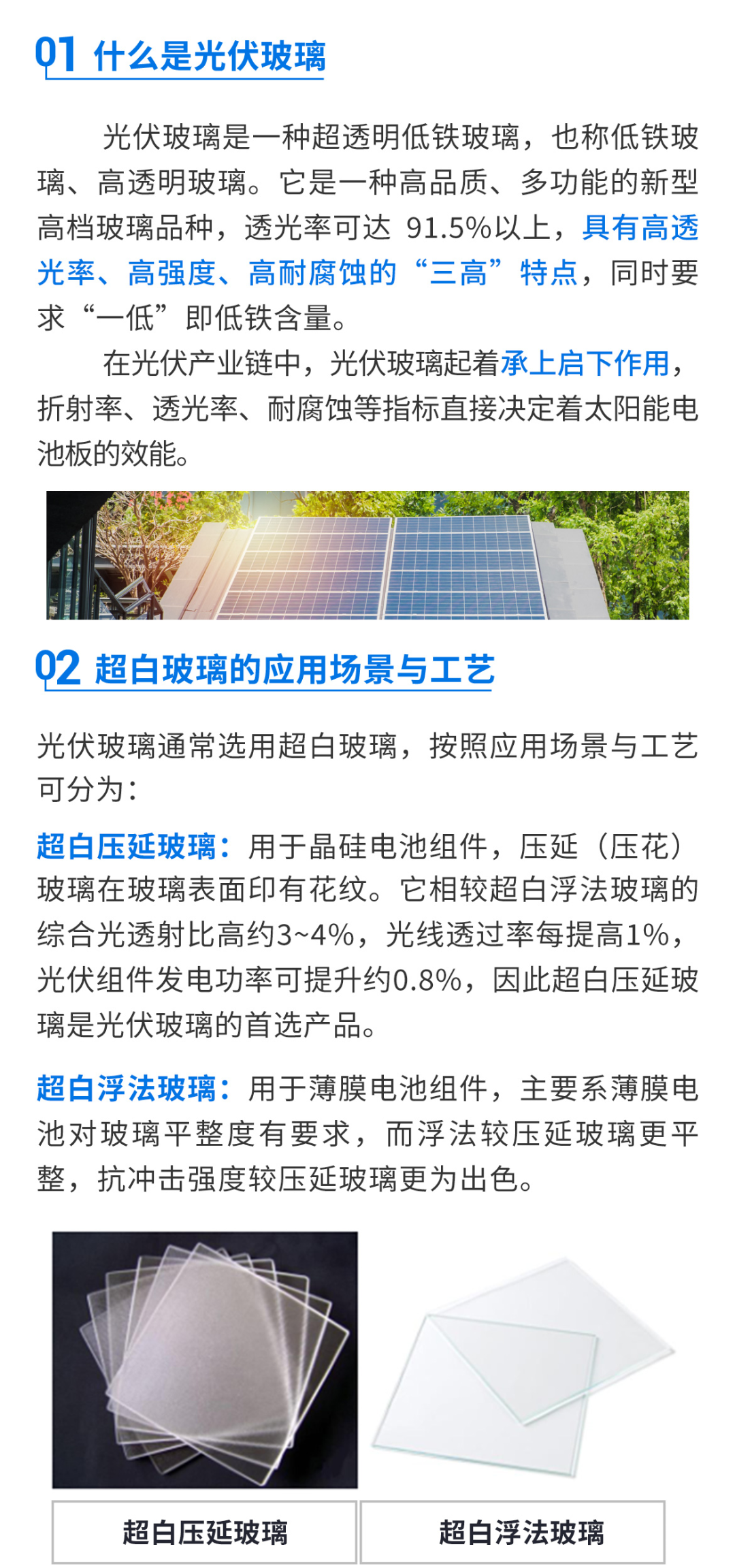 光伏玻璃是一種超透明低鐵玻璃,也稱(chēng)低鐵玻璃、高透明玻璃。它是一種高品質(zhì)、多功能的新型高檔玻璃品種,透光率可達 91.5%以上,具有高透光率、高強度、高耐腐蝕的“三高”特點(diǎn),同時(shí)要求“一低”即低鐵含量。