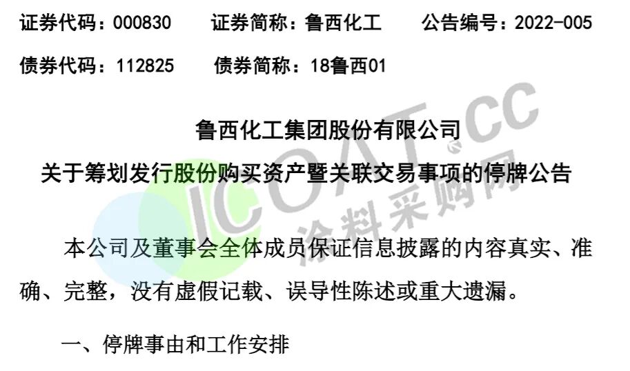魯西化工公告,正在籌劃發(fā)行股份購買(mǎi)魯西集團有限公司100%股權暨關(guān)聯(lián)交易事項,公司股票開(kāi)始停牌,債券“18魯西01”不停牌。