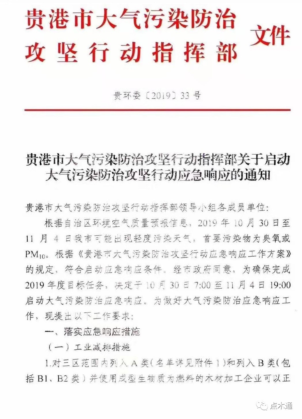 據了解:板材生產(chǎn)基地廣西貴港大氣污染防治攻堅行動(dòng)指揮部發(fā)出緊急通知,為確保完成2019年度目標任務(wù),決定于10月30日7:00至11月4月日19:00時(shí)啟動(dòng)大氣污染防治應急響應。
