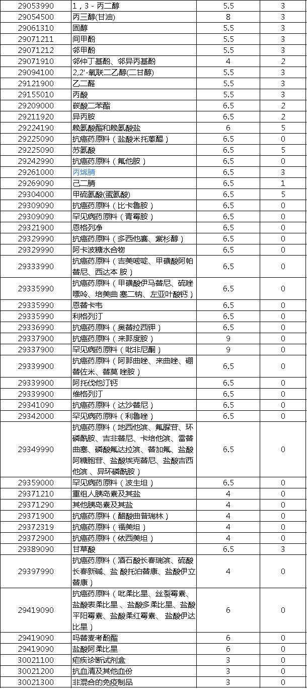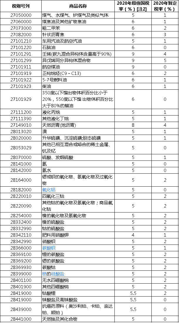 進(jìn)口最惠國稅率:自2020年1月1日起對859項商品(不含關(guān)稅配額商品)實(shí)施進(jìn)口暫定稅率,其中包含200多項化工相關(guān)產(chǎn)品: