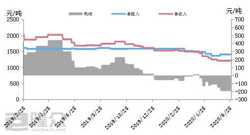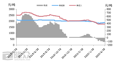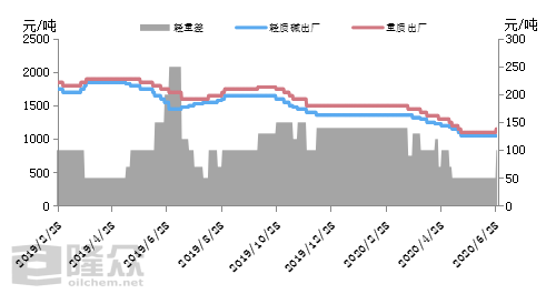 隆眾資訊統計,2020年截止到6月30日,聯(lián)產(chǎn)企業(yè)純堿平均利潤8.92元/噸,同比2019年利潤549.92元/噸下降541元/噸。氨堿企業(yè)純堿平均利潤-80.36元/噸,同比2019年利潤407.60元/噸下降487.96元/噸。當前,聯(lián)產(chǎn)企業(yè)利潤-115.93元,氨堿-195.5元/噸。