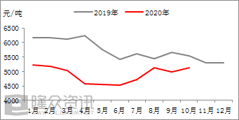 今年三聚氰胺行情整體弱于去年水平。2020年上半年受疫情影響較大,三聚氰胺價(jià)格維持在4500-5200元/噸之間波動(dòng),而下半年行情明顯好于上半年,尤其是進(jìn)入10月以來(lái),三聚氰胺市場(chǎng)持續上漲,截至到11月6日,三聚氰胺出廠(chǎng)價(jià)格調漲至5700-6100元/噸,新疆地區部分承兌在5050元/噸左右,三聚氰胺價(jià)格首次突破6000元/噸大關(guān)。